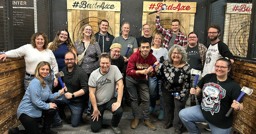The Halton teams had a few axes to grind at their (belated) holiday party.